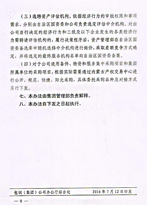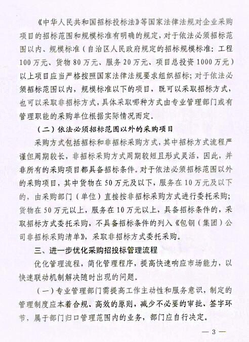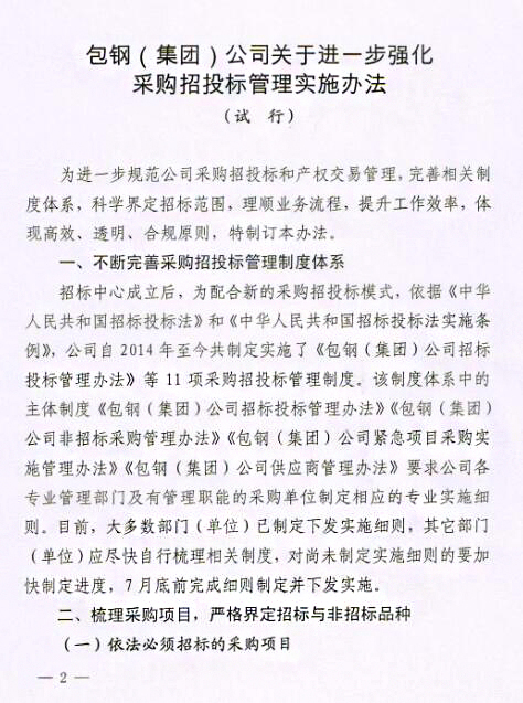 關于印發(fā)《包鋼(集團)公司關于進一步強化采購招投標管理實施辦法(試行)》的通知