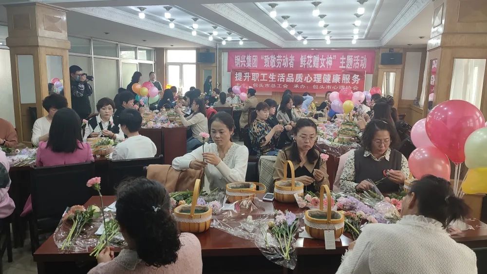 活動中,邀請了包頭市陳欣心理學校的老師針對現(xiàn)代女性在工作、生活中如何進行自我調節(jié)和自我放松,從而促進了女職工的身心健康。隨后,花藝老師從選花、裁剪、顏色搭配、造型等多方面講解插花技巧。大家將修剪好的花束插入花籃中,一籃籃春意盎然、獨具匠心的插花作品應運而生。通過學習插花,既陶冶了情操、提高了審美,又增強了女職工的幸福感。